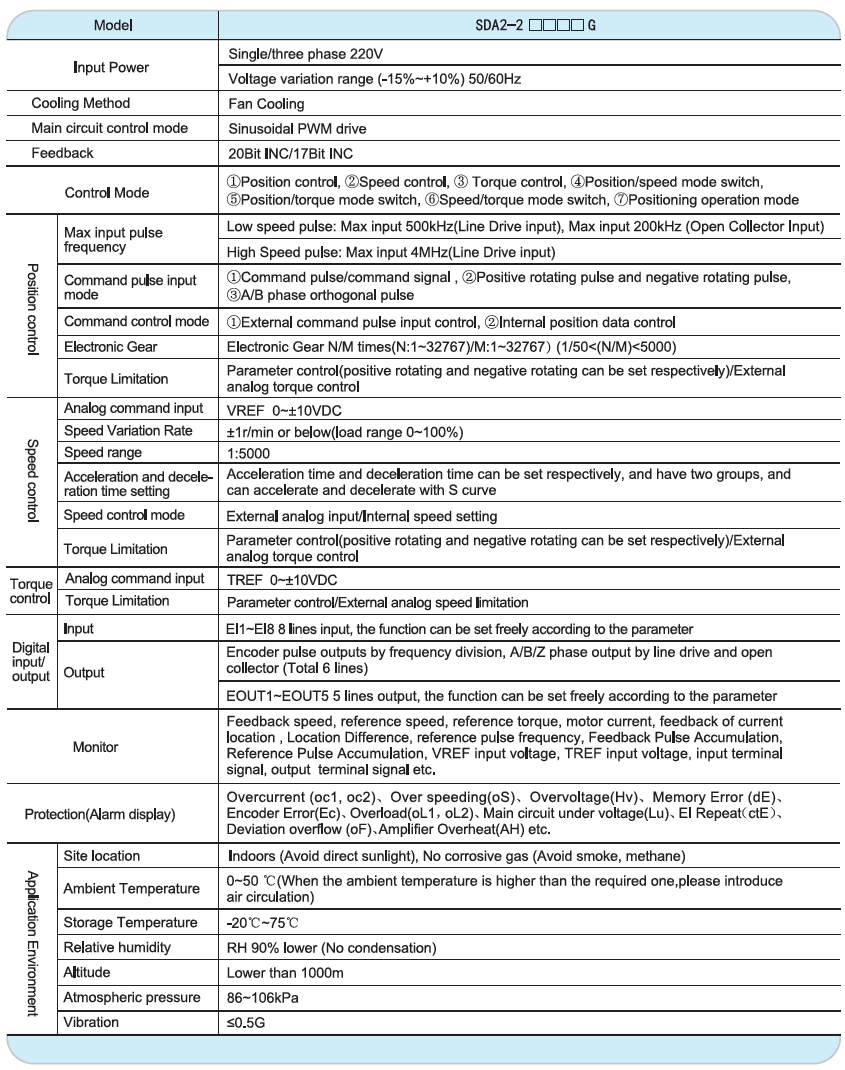 SDA2 High performance general purpose Rated Voltage:220V single phase / 220V 3phase / 380V 3phase Power: 0.4Kw~7.5kW